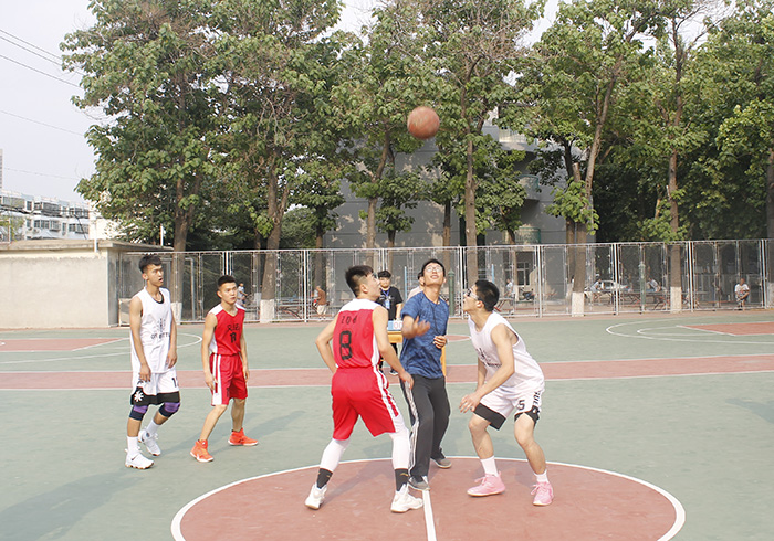 近日,五系篮球赛开赛。机电系篮球队员在赛场