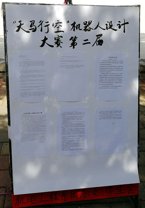5月10日至12日,机电系机器人协会在5#202举办第二届“天马行空”机器人设计大赛。