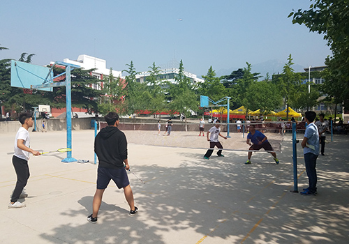 5月13日上午,机电系羽毛球协会在小篮球场旁羽毛球场举办男子双打羽毛球友谊赛,共有13支队伍参加比赛。
