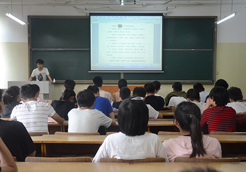 会上,科研部部长张自国围绕PPT向大家讲解了参加“互联网+”创新创业大赛的注意事项。张自国强调了参赛项目、参赛组别、参赛人数限制、竞赛报名、初赛、决赛时间等需要大家注意的问题。最后他将《项目计划书规范格式》、《参赛报名表》电子版发给各班级科技委员,以通知各班级参赛人员。