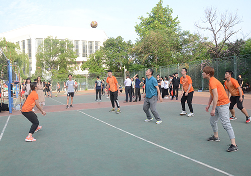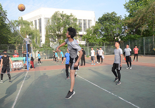 5月7日,机电师生在东校排球场参加校区师生排球赛。系党总支副书记殷永贵及系团总支老师分别组队参赛。
