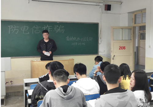 4月24日下午,自动化15-1团支部在3#208召开“防电信诈骗”知识讲座,自动化15-1团支部书记田传喜主讲,自动化15-1全体同学参加会议。