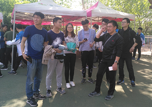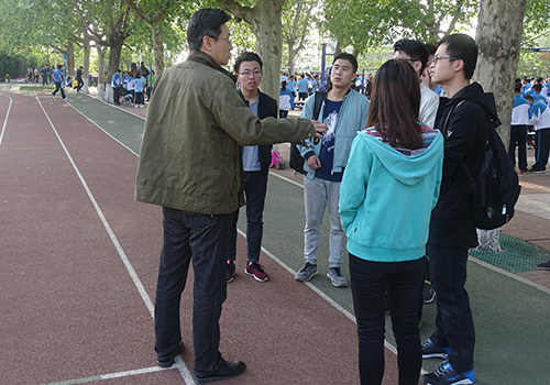 4月19日,机电系辅导员到操场为运动员和工作人员做场外指导。