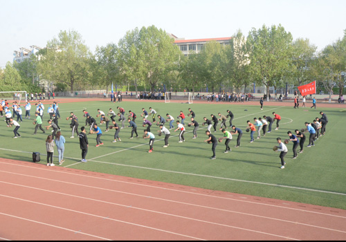 4月16日下午,机电系篮球操方队在操场进行篮球操彩排,系团总支周立志审核彩排并提出建议。