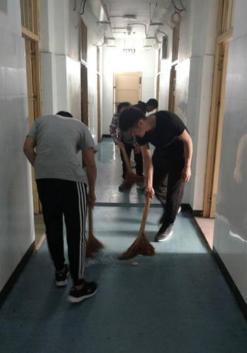 【三个出来】机电系宿建第四党小组组织成员义务打扫楼道