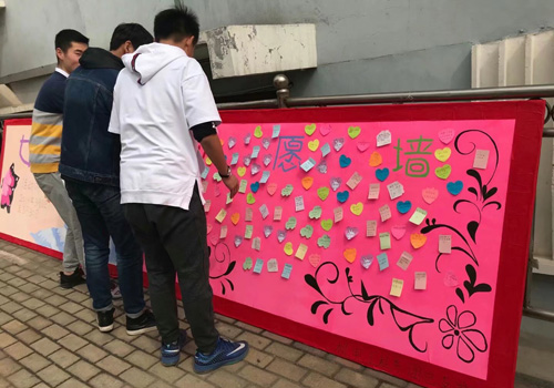 活动将提前征集到的女生心愿纸条粘贴在心愿板上,男生将自己能够完成的心愿贴纸撕下来,通过贴纸背面的联系方式找到贴纸主人,并帮忙完成心愿。