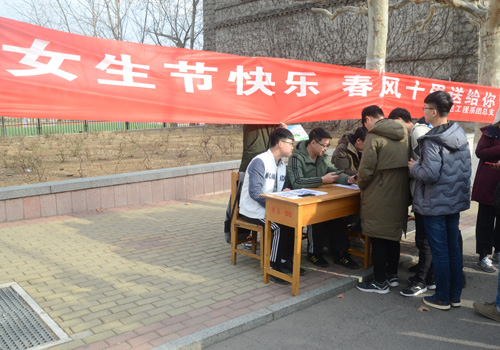 近日,机电系举办“女生节‘十里春风,送给你’”活动。3月7日,系权益部在林荫道进行了活动宣传。