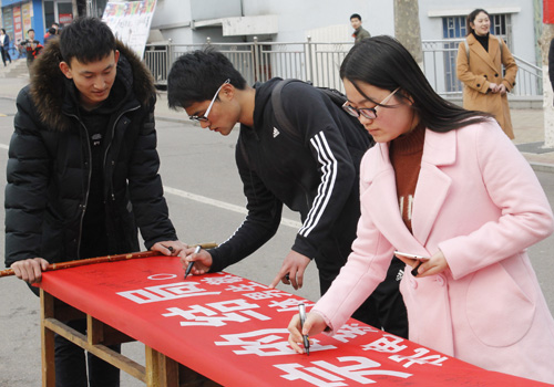 3月6日下午,机电系文礼部在林荫道组织女生节横幅签名活动。