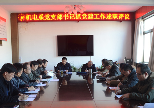 1月11日,机电系在系会议室召开党支部书记抓党建工作述职评议会。机电系科以上干部、党支部书记、党员及群众代表参加述职评议会。校区管委会常务副主任、学院常务副院长蒋金泉到会督导,会议由系党总支书记张建中主持。