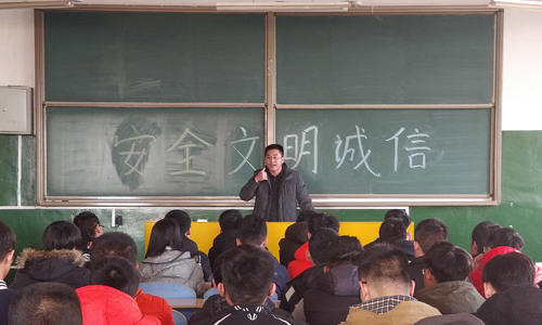 1月5日下午,机电系辅导员周立志在2#401给2017级机械电子专业召开“安全、文明、诚信”主题班会。