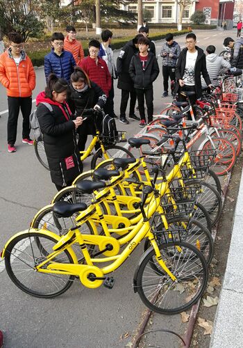 12月28日,机电系智能控制17-1班举办“勇做新时代弄潮儿”主题团日活动,组织团支部成员对东校园共享单车进行整理。