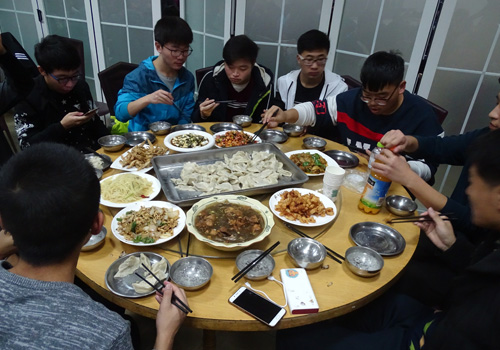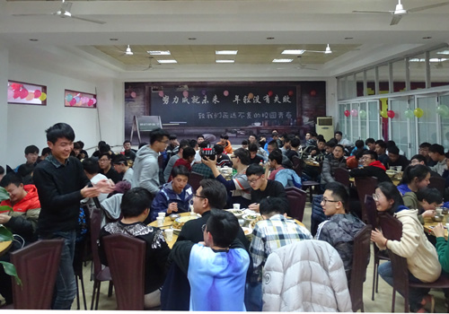 12月22日冬至,机电系2017级部分专业在学者餐厅组织“包水饺,迎冬至”活动。2017级自动化、机制、智能控制等专业约200名学生参加活动。