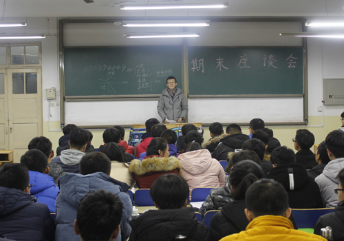 陆新时为同学们讲解了期末考试作弊后果,并介绍了一些期末复习和心态调整的方法。他告诉同学们勿把考试当目的,多了解自己专业,要在复习过程中学会将知识点融会贯通。会上,谢石璞还与同学们分享了各科目的考试技巧。
