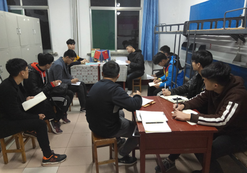 11月28日晚,机电系宿建第四党小组在12#宿舍楼310值班室召开工作部署会,党小组全体成员参加