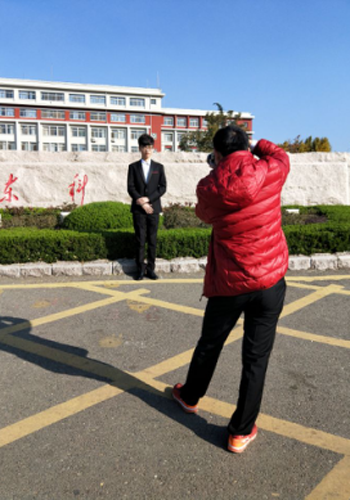 11月4日,机电系新闻中心于学校南门为学生会干部拍摄正装照,干部们不断调整姿势,只为展现自己最好的一面。