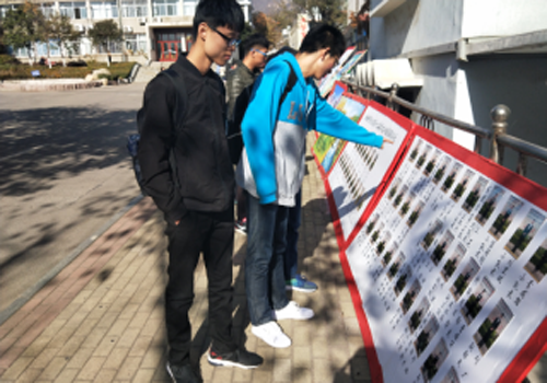 展出期间,机电系学子观看展板,了解机电系学生会干部信息。(文: 曹浩浩 亓浩东 图: 郑璐)