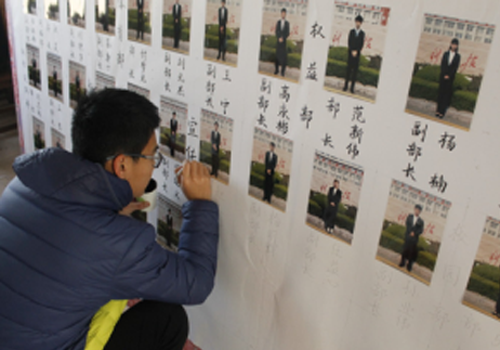 11月23日,机电系宣传部对展板进行最后的完善,检查好每一位干部的姓名职务,认真写好每一个字。