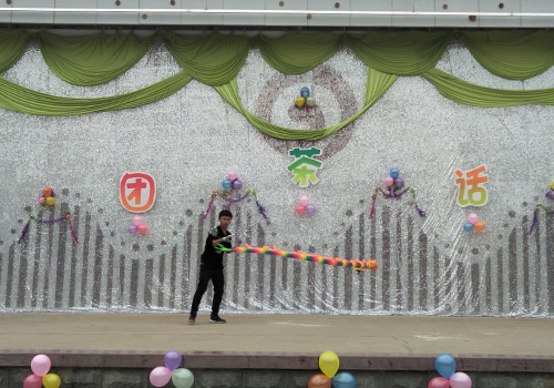 联谊活动中,双截棍协会表演的《棍舞风云》给观众带来新奇体验;岳玲空竹协会带来了花式空竹表演——《活灵活现》;社团部干事表演的小品《社团茶话会》吸引观众的眼球,带动了全场气氛,场下观众积极参与抢板凳、夹气球等游戏。随后,各社团代表相继发言,分析了社团上学期的工作,并介绍了新学期的工作计划。