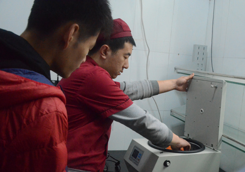 餐厅负责人带领成员们参观了食品仓库,向大家介绍了仓库食品“快进快出”的宗旨,液体调料三天、食用油一周保证用完更新,并展示了台账和营业执照。他还向成员们介绍了检测试管、离心机、食品药品监督局联网的食品安全检测仪等食品安全检测设备,并演示了检测漂白粉和农药残留的操作流程。他告诉大家,每天早晨8点左右蔬菜送到餐厅后,餐厅就会在将其清洗之前对所有蔬菜进行抽样检测,一个小时左右便可出结果,检测结果每天都会上报食品药品监督局。他表示:餐厅坚持严格对待食品安全的原则,检测结果中农药残留超过一定值的蔬菜会被立即停止使用,并上报食品药品监督局溯源。