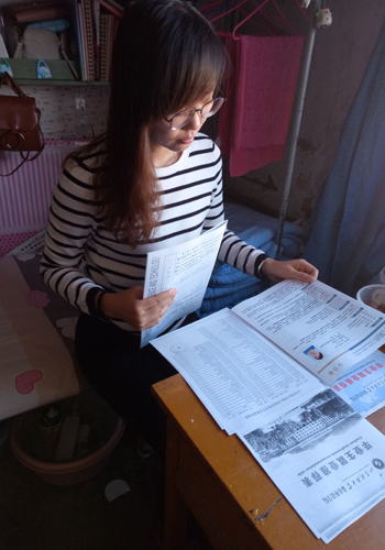 在宿舍里对简历进行最后的修改。