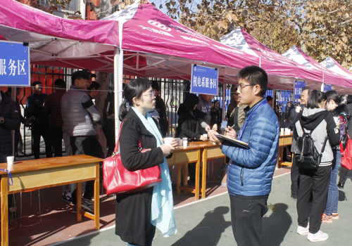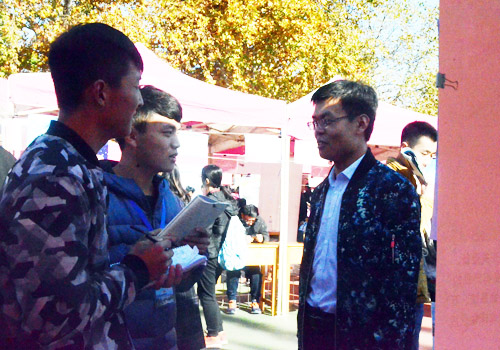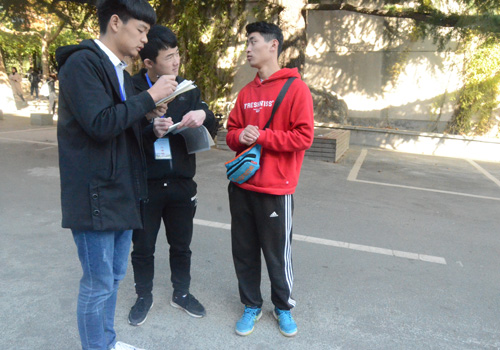 采访到场的领导老师。 与用人单位交流,了解新闻报道需要的信息。 对学生会主席进行采访,了解学生会工作安排。 协助老师为毕业生写祝福语。 赢得老师的赞扬和鼓励。(文/图:亓文越 申建正)