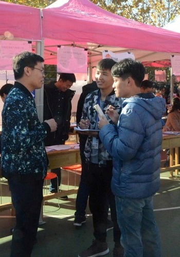 11月11日,校区2017年秋冬季毕业生供需见面会在东校体育场举行,包括众多的校友单位前来参会。记者采访了其中一家校友单位——济南锐泰电气有限公司的负责人吕东。
