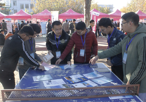 机电系权益部成员对参加招聘会的企业单位进行统计。(文/图: 曹浩浩 申建正)