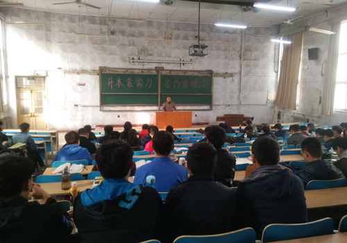11月7日,系团总支辅导员王衍国在二号楼阶梯教室召开“升本靠实力,签约需魄力”主题班会,15级机制(科专)专业全体学生参加班会。
