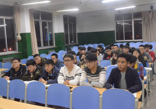 ,系辅导员谢清勇主持班会,并邀请两位机电系大四保研生为同学们作报告。