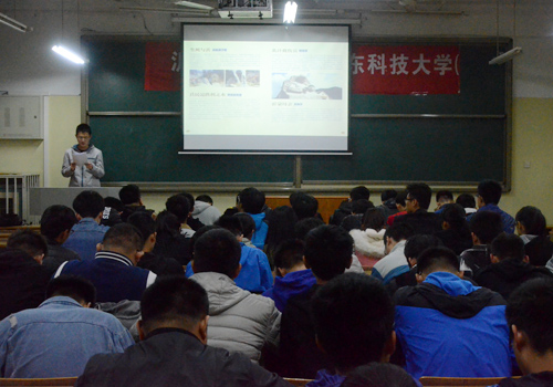 11月3日,由微梦想公益协会主办的“沂蒙精神百校行”走进山东科技大学活动在5号楼204举行,机电系17级自动化专业全体学生参加。