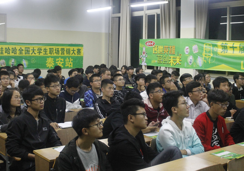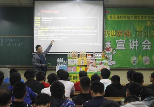 10月27日,机电系在5#204举办第十届娃哈哈全国大学生职场营销实践大赛宣讲会。宣讲会由娃哈哈泰安市场部经理狄崇田主讲。系学生会主席辛鹏飞、外联部负责人及32支参赛团队代表、部分有报名意向的同学参加宣讲会。