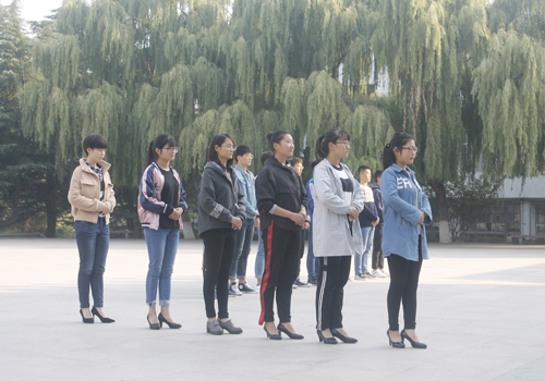 10月26日,机电系文明礼仪部在文化广场对礼仪队成员进行首次培训。