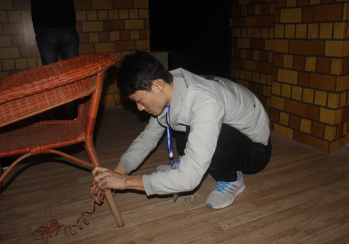 社会实践部成员在0898超级密室打扫卫生、修理简单器械。据了解,0898密室负责人高中毕业后独自创业,在泰安已经拥有两家密室逃脱。密室负责人与部门成员分享创业经历,鼓励大学生创业。社会实践部部长刘志起在采访时说:“通过此次活动,我们可以亲近社会,了解器械原理,并向创业人士学习社会经验和创业思路。”