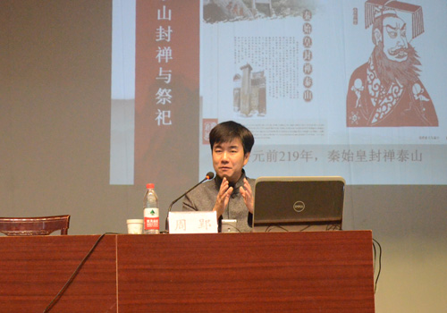 10月24日,泰山文化研究专家周郢教授应邀在东校大礼堂做《读泰山:历史石书,文化长卷》专题报告,机电系全体新生听取了报告会。
