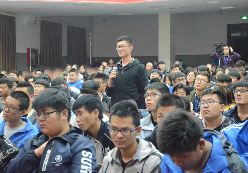 周教授结合自己对泰山文化多年的研究成果,从泰山之名的由来,到历代帝王对泰山的封禅及“女神之山”的传说等相关历史,用丰富的史料、独特的视角、风趣的语言对泰山文化做了详细解析。报告结束后,机电学子积极参与问答环节,数名机电系学生就报告内容结合自己认知向周郢教授提问,周郢均做出了详细解答。