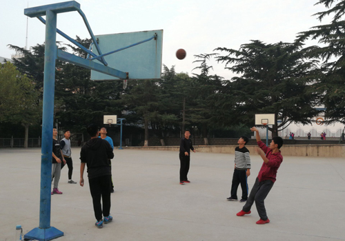 10月15日,机电系17级智能控制专业助理辅导员胡世浩和新生篮球队队员到小篮球场进行篮球训练。
