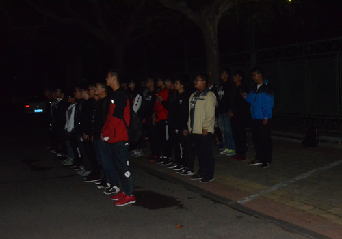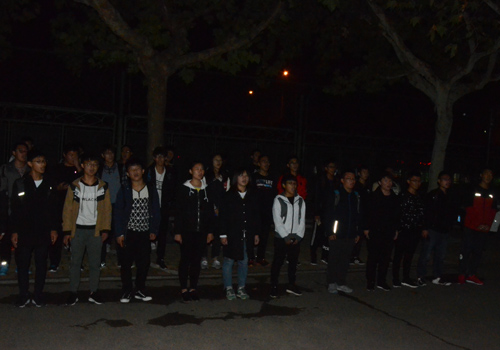 10月12日,机电系新生晚自习下课后在排球场进行新生合唱比赛排练。