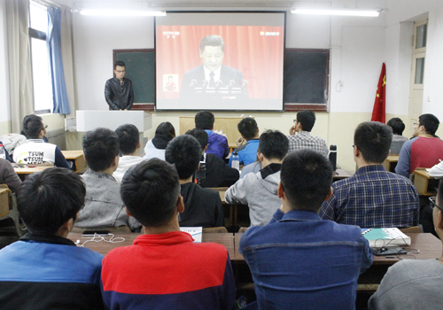 10月18日,机电系团总支郅红珍在3号楼206召开“青春喜迎十九大,不忘初心跟党走”主题班会。机制(本科)专业学生参加班会。