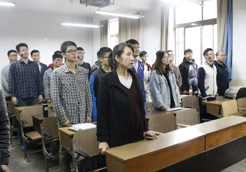 会上,郅红珍组织同学们重温了入团誓词。(文: 申建正 邢开 图: 申建正)
