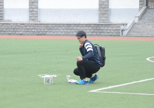 近日,机电系大学生篮球联赛引入无人机进行航拍。