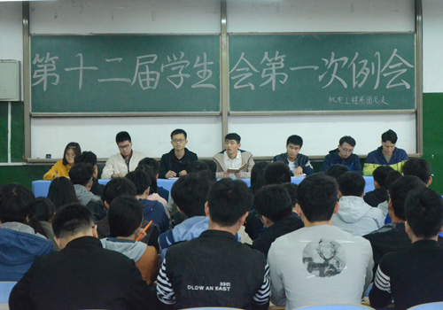 10月15日下午,机电系第十二届学生会在2号楼401召开第一次例会,机电系第十二届学生会主席、副主席及73名部长参加例会,例会由学生会主席辛鹏飞主持。
