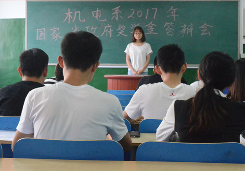 9月22日,机电系在2#403召开2017年度国家、省政府奖学金答辩会。系团总支书记谢清勇及各辅导员组成答辩小组并担任评委。