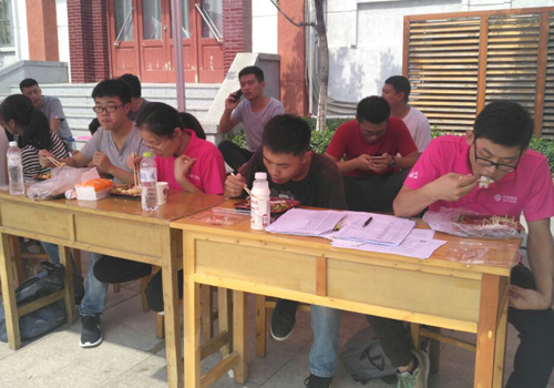 新生到达迎新报到处后,新生助理辅导员向新生发放《机电工程系学生安全责任保证书》、《机电工程系2017级新生入学须知》、《机电工程系致学生家长的一封信》及《新生报道手续流程表》,告知新生宿舍分配情况并发放钥匙后,安排领航人员带领新生完成报道流程。新生报到期间,新生助理辅导员告知新生注意事项,并帮助新生开设“迷彩服领取证明”和“校服领取证明”。午饭时分,为避免前来报到的新生因无人接待、不熟悉流程等情况的发生,机电系各班级助理辅导员坚守第一线,在报到处吃盒饭,直至完成报到工作。