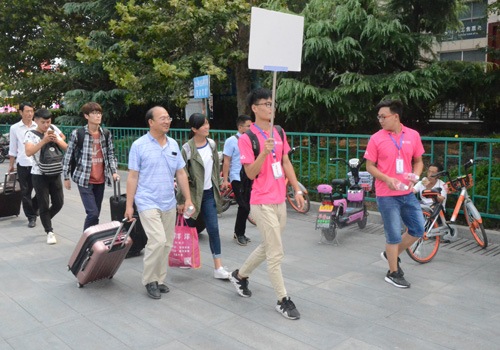 9月9日,机电系迎新队伍前往火车站迎接2017级新生。