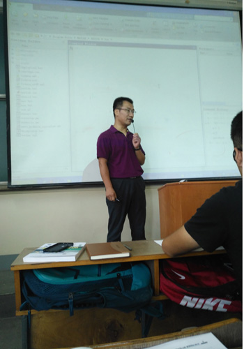 记者跟随16级智能控制专业来到3#114,《复变函数与积分变换》老师郭文静向同学们介绍这门课程,她从课程内容概括、教学计划、推荐可借阅有关书籍等方面作为课堂开篇。在5#404,《计算机仿真》老师祝长生向同学们介绍MATLAB的概念、软件功能以及应用领域等。在5#402自动化专业的课堂上,高学辉老师就计算机仿真的发展、变迁及未来的应用前景等方面向同学们做了详细介绍。