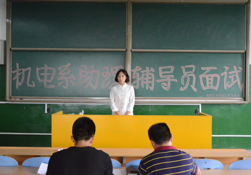 9月3日,机电系在2号楼401和405开展2017级新生助理辅导员面试工作。系2017级新生辅导员吴天南、周立志、刘钦兴、王保垒担任评委。24名14、15级机电系学生参加面试。