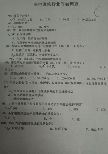 社区的大多数人认为家电维修市场的现状杂乱无序,维修服务网点少,维修人员缺失,很多都是由个体维修商户来维修,维修质量难以得到保证,甚至很多地方都面临着找不到维修网点或者维修人员修理水平有限的状况。不少居民表示现在的维修点距离较远,日常维修服务非常不方便。因此,许多居民表示一般小家电出现故障会选择重新购买。