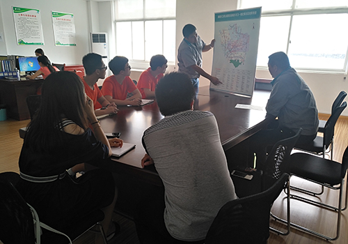 黄墩镇政府工作人员向团队成员介绍城乡环卫一体化的进程与成效。