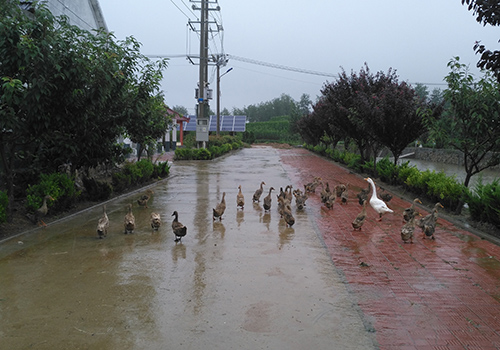 乡村街道上看不见垃圾,看到的只有浓浓的乡村气息。