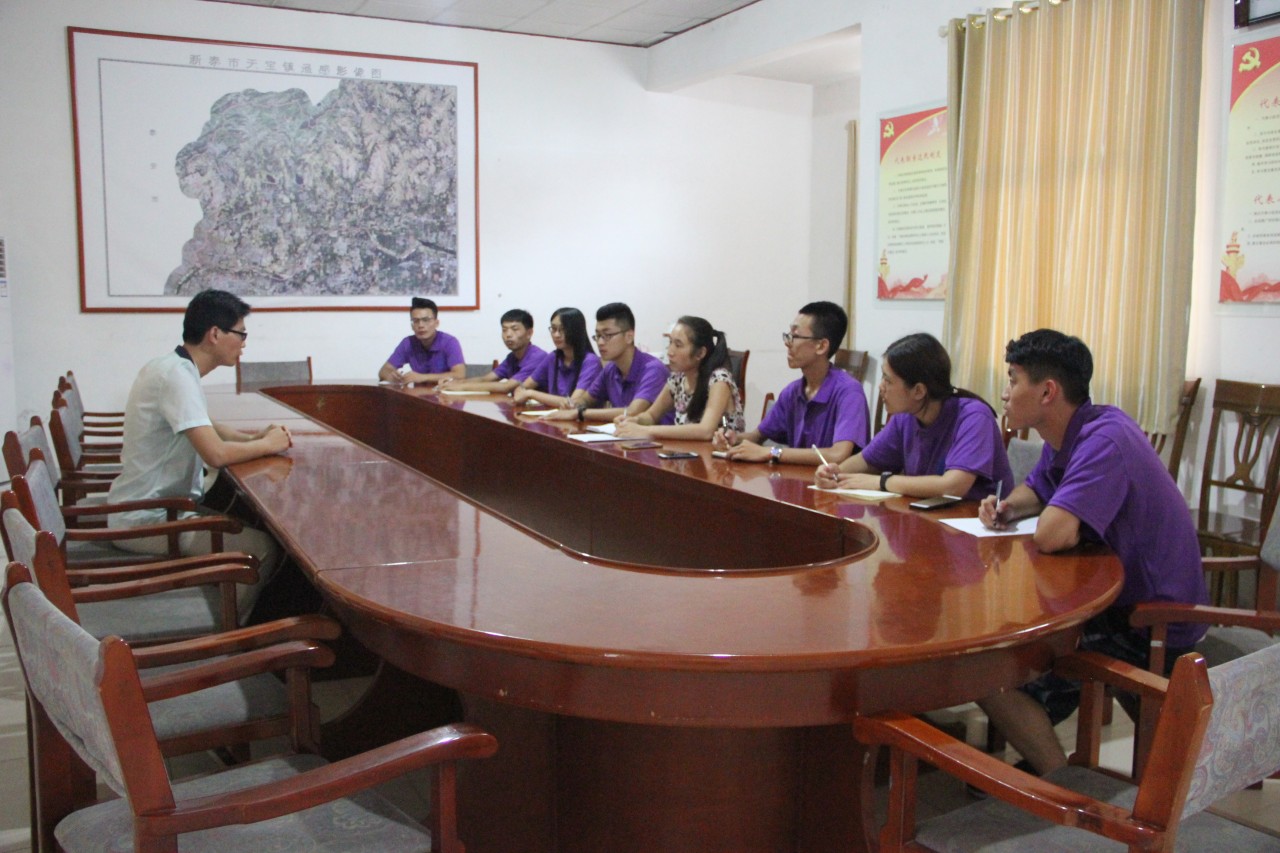 2017年7月26日下午,机电系“党建入基层”社会实践团队邀请天宝镇宣传办选调村官马超分享工作经历。